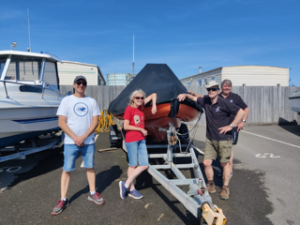 The Jaffa – 24/8/25 A planned dive on the Pentyrch became a shorter trip to the Jaffa when the wind and tide decided to gang up on us from opposite directions and make John the Cox have to work very hard to prevent us crashing over the very fickle waves. The Jaffa was used as an armed merchant ship in the 1st world war and was sunk by a German U-boat torpedo in 1918. It is about 9 miles from Littlehampton and lies at a depth of between 25 and 30 metres depending on tides. There is a lot of the wreck to explore but it is in 2 parts. We dropped the shot on the wreck but the current was still pretty strong and John soon realised that it had drifted off so we reshot it and jumped in. It was a tough pull down the shot line but luckily (or unluckily) depending on which way you look at it, the shot had wedged itself inside the wreck so we didn’t pull it off – unluckily it meant we then had to get it out of the wreck, then dropped it into another part of the wreck so had to hoik it up again – well actually Justin had to, but I did hold the torch! Once we were on the wreck the current completely disappeared though it was bit dark and visibility wasn’t great but can’t have everything I suppose. There was a lot of wreck to look at it much of it recognisable as part of a ship – propellor, side panels, portholes – definitely worth another visit especially if the visibility was better. Lots of fish and starfish, a couple of big congers, one seemingly being guarded by a fish as every time I tried to get a better look it swam right in front of me, no crabs or lobsters or they were very well hidden.